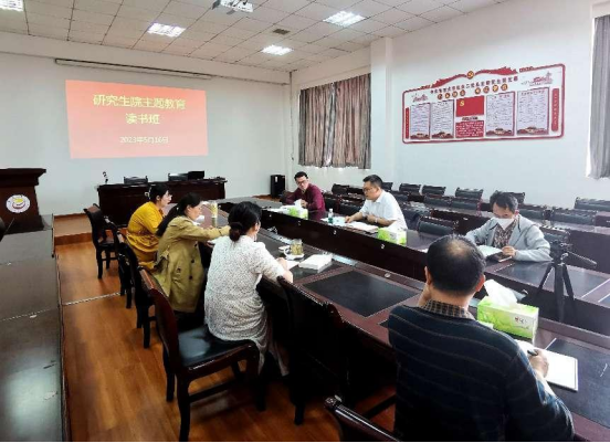 为深入学习贯彻习近平新时代中国特色社会主义思想,推动主题教育走深走实,5月16日,研究生院党支部举办学习贯彻习近平新时代中国特色社会主义思想主题教育读书班。本次读书班采取集中领学、个人自学、分组讨论、交流研讨等方式,进一步强化理论武装,提升履职能力。读书班由研究生院院长、支部书记蒋辉主持。