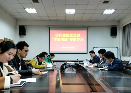 3月30日上午,研究生院党支部在研究生院二楼会议室开展“学史明理”专题学习暨党史学习教育动员会,专题学习习近平总书记在党史学习教育动员大会上的讲话精神,并研究部署阶段性学习计划。研究生院领导班子、支部全体党员参加会议,院长李长友出席会议。会议由支部书记肖宪平主持。