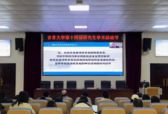 12月6日下午,吉首大学马克思主义学院在思政园1207VR教室举行第十四届研究生学术活动节暨马院对口协作系列学术讲座。教育部长江学者、湘潭大学马克思主义学院教授、博士生导师李佑新应邀作了题为“深入理解马克思主义中国化时代化新的飞跃”的学术讲座。吉首大学马克思主义学院全体教师及在校研究生到场聆听讲座,湖南医药学院马克思主义学院、湖南应用技术学院马克思主义学院及湘西职院马克思主义学院思政课教师以线上形式参加。讲座由马克思主义学院院长肖映胜主持。