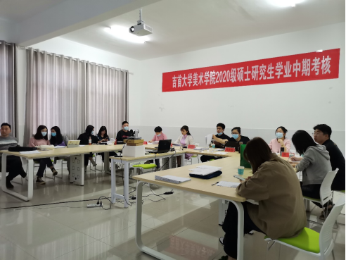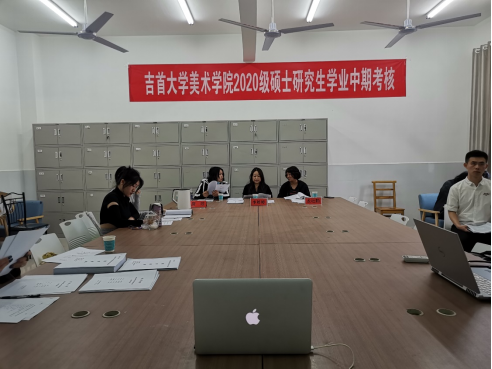 2022年5月4日上午9点,吉首大学美术学院2020级研究生中期考核会议以线上、线下结合的形式,在张家界校区5教402、415教室分组举行。此次会议由美术学院李婷婷副院长任考核组组长,21名研究生参加考核,11名评审专家及部分旁听研究生参加本次考核会议。