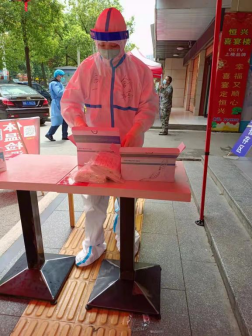 3月18日,湖南省怀化市鹤城区出现阳性病例,鹤城主城区紧急实行封控管理,进入战斗状态。在严峻的疫情下,吉首大学2021级护理专业硕士研究生舒婷,主动请缨成为追捕病毒的核酸检测志愿者,积极投身鹤城区抗疫工作,与前线“战士们”一起,穿上厚重的防护服,戴上防护面屏和N95口罩,将全身上下包裹地严密无隙,争分夺秒,全力以赴投入采集工作中。