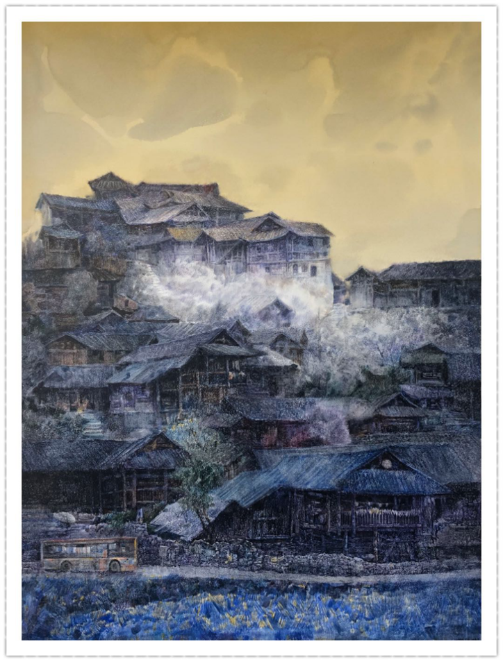 (图为硕士生导师向妤的水彩作品《聚变.湘西村寨》)