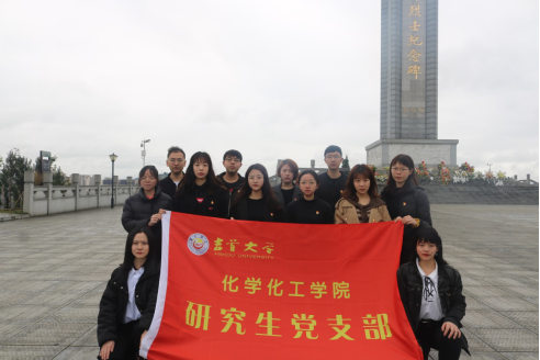 松柏苍翠,陵园肃穆,化学化工学院研究生党员胸前佩戴小白花,怀着无比崇敬的心情聚集在纪念碑前,庄严肃立,沉痛默哀。接着,党员代表张海燕同志带领大家重温入党誓词,面对党旗进行了庄严宣誓,并且研究生党员代表在纪念碑前发表了感言表达了为党的事业奋斗终生的决心。