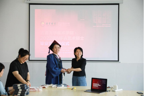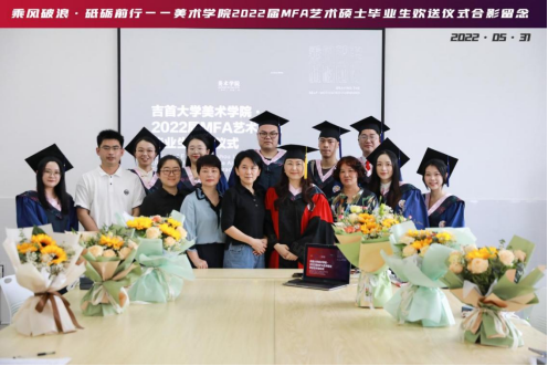2022年5月31日上午9点半,吉首大学美术学院在5教415会议室举办了以“乘风破浪·砥砺前行”为主题的2022届硕士研究生毕业欢送仪式。美术学院党委书记王浓章、副院长李婷婷、研究生办主任龙社勤、导师代表以及2022届硕士研究生共聚一堂,一同见证这难忘的时刻。