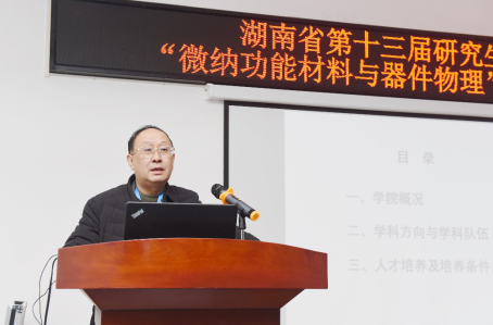 图为湖南省物理学会理事长、湘潭大学钟建新教授致辞
