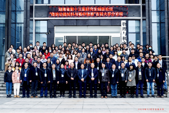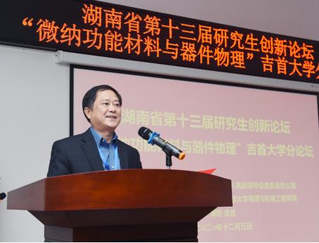 2020年12月4日-5日,由湖南省教育厅主办,吉首大学承办的第十三届湖南省研究生创新论坛“微纳功能材料与器件物理”分论坛在吉首大学物理与机电工程学院顺利举办。吉首大学党委委员、校纪委书记、物理学科带头人赵鹤平教授,吉首大学党委委员、副校长钟海平教授,吉首大学研究生院院长李长友教授,湖南省物理学会理事长、湘潭大学钟建新教授等领导、专家出席分论坛开幕式,来自国防科技大学、中南大学、湖南大学、湖南师范大学、湘潭大学、吉首大学等省内20余所高校的150余名师生代表参加论坛。论坛开幕式由物理与机电工程学院院长邓科教授主持。