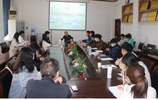 为加强研究生干部服务意识、端正工作作风、确保2022级研究生复试工作顺利进行,4月4日中午,马克思主义学院研究生会于学院会议室召开全体干部大会。会议落实防疫要求,全员佩戴口罩,注重个人防护,部分干部于腾讯会议参加会议。马克思主义学院党委书记柴绪亮出席会议并讲话,会议由研究生会主席团成员李贵仲主持。