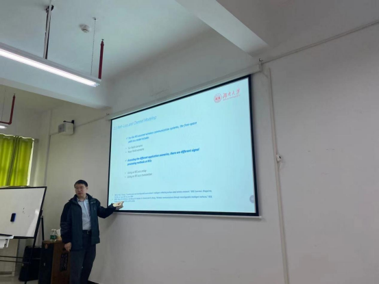 图为湖南大学通信系主任、博士生导师杨亮教授作讲座