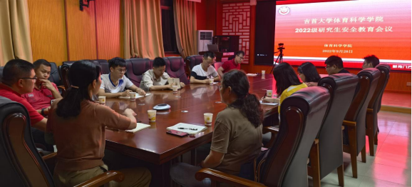 (通讯员段靓璠、王佳乐报道)2022年9月28日,在总理楼三楼会议室开展了“吉首大学体育科学学院2022级研究生安全教育会议”。本次会议采用线上加线下的形式举行,学院党委书记吴湘军、副书记周剑波出席本次会议,由研究生秘书覃英老师主持本次会议。