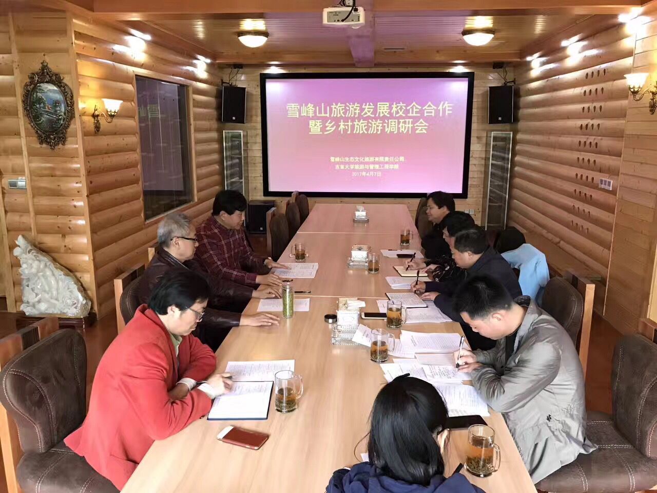 2017年4月7日上午,吉首大学旅游与管理工程学院与雪峰山生态文化旅游有限公司在穿岩山庄会议室联合举办了“雪峰山旅游发展校企合作暨乡村旅游调研会”。吉首大学原正校级督导张建永教授,吉首大学副校长李定珍教授,吉首大学旅游与管理工程学院院长尹华光教授、副院长鲁明勇教授、向昌国教授,雪山峰生态文化旅游有限公司董事长陈黎明先生、行政总监夏喜衡先生等参加会议。校企双方就共建研究生实践教学基地、建设湖南乡村旅游研究平台、推动雪峰山地区全域旅游发展等合作事宜进行了深入讨论和工作布置,产学研合作取得了实质性成果。