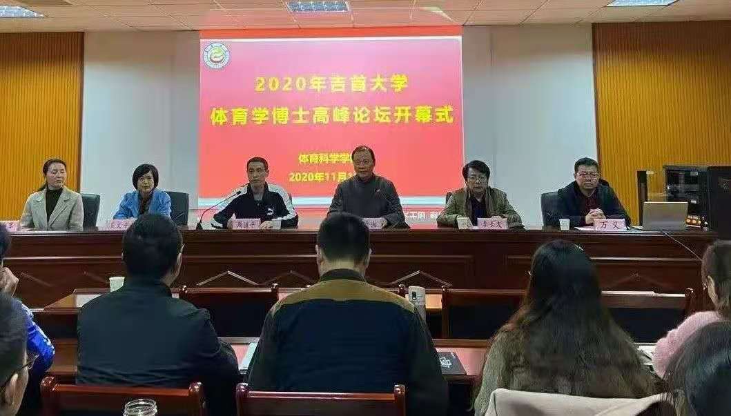 2020年11月16日晚上7点,2020年吉首大学“体育学博士高峰论坛”开幕式在总理楼三楼会议室进行。吉首大学校党委书记白晋湘教授,吉首大学研究生院院长李长友等领导参加,开幕式由体育科学学院院长周道平教授主持。