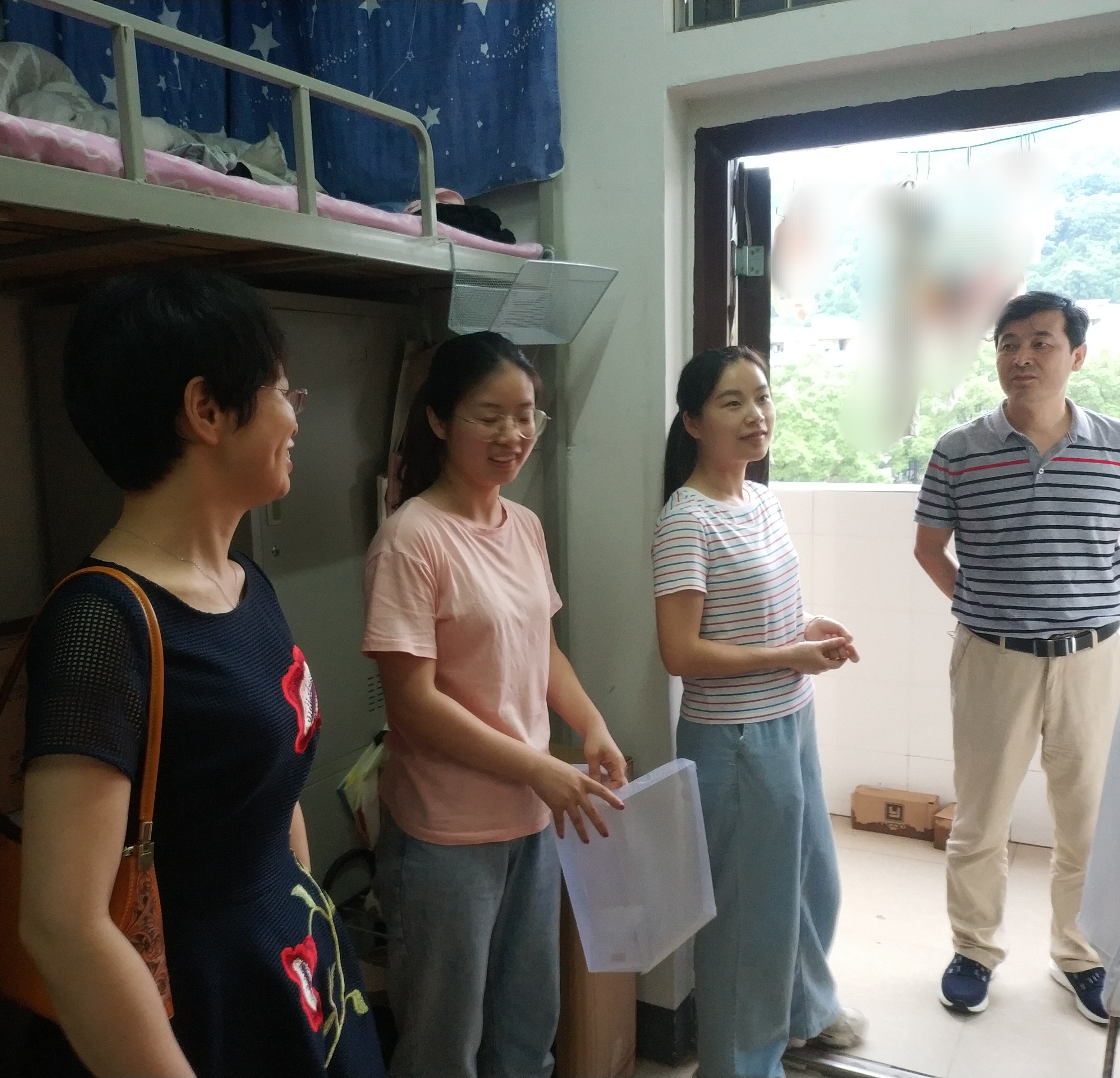 6月11日下午,为了了解毕业生离校情况和安全问题,文学院党委书记杨龙斌和院长助理瞿建慧教授以及研究生助理深入学生宿舍亲切看望硕士毕业生。