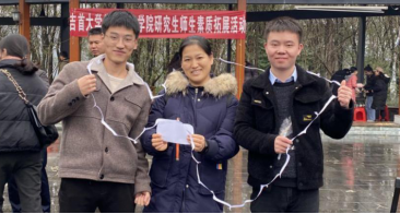 接着,以导师和学生共同参与的素质拓展小游戏将活动带入高潮,共组织了“小鸡进化史”“穿越A4纸”“挤眉弄眼”“桃花朵朵开”等充满趣味又增强团队协作能力的游戏比赛,比赛过程中,还增加了奖励与惩罚机制,调动各组的活动积极性。同学们和老师都团结一心,即增进了老师和同学们的相互了解,又缓解了科研压力。