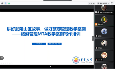 覃老师以《讲好武陵山区故事,做好旅游管理教学案例》为主题,分享了她去年12月份在北京参加全国MTA教指委举办的案例建设研讨会的学习心得与体会。她从MTA教学案例创作并使用的理由、MTA案例的采编、共创案例集编写思路三个方面,结合优秀案例进行了生动讲解,并指出,要研究创作出好案例,要基于学校办学于武陵山片区的实际,讲好武陵山区旅游发展故事,平时多研究优秀案例,坚持高标准要求,要有清晰的理论要发挥共创精神,团结合作,互相帮助,互相进步,才能达到目标!覃老师的讲课深入浅出,内容丰富,说理深刻,启发性大,师生们受益匪浅。