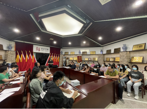 2021年10月8日下午3点,美术学院2021级艺术硕士入学专业教育暨新生导师见面会于美院会议室举行。参会人员有李婷婷副院长(主持工作)、贺炜副院长、学科负责人刘俊教授、龙社勤副教授、各专业导师、任课老师、研究生秘书以及2021级研究生新生。会议由研究生办公室主任龙社勤副教授主持会议。
