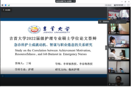 本网讯(李寻亚 王建霞)根据学校统筹抓好疫情防控工作的精神,医学院按照研究生院关于疫情防控期间扎实做好2022年上半年研究生学位论文答辩的工作要求,本着“质量不降低,环节不减少,答辩不延迟”原则,认真制定工作方案、周密部署工作任务、注重规范工作细节。5月8日,在腾讯会议平台如期举行了2022届临床医学和护理专业硕士研究生毕业论文答辩。
