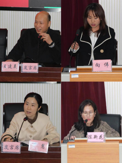 吉首大学马克思主义学院副院长曾文介绍了对口协作的三所马院基本情况并主持集体备课。吉首大学马克思主义学院概论课教研室主任王建美博士、湘西职院思政部概论课教研室主任向伟老师、吉首大学马克思主义学院概论课教研室主任尹慧博士、湘西职院思政部德法教研室主任陈新花老师依次进行专题发言。对二十大报告精神融入思想政治理论课教学展开研究,就“融什么、怎么融”提出了各自的见解。