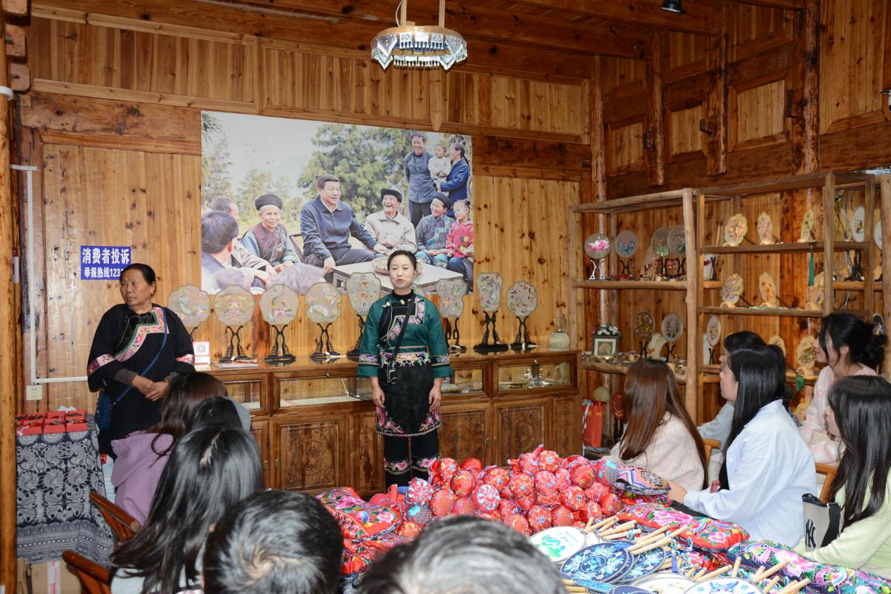 比如在十八洞村苗绣基地,同学们参观了苗绣展示,听了主题微党课,深入体验了苗族传统文化的魅力。据了解,苗绣不仅是中国非物质文化遗产的重要组成部分,也是十八洞村文化自信的体现。
