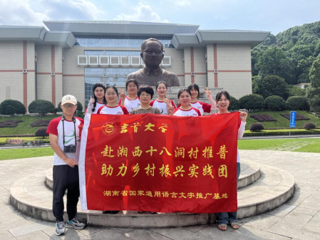 动员会后,实践团成员在从文广场合影留念,准备开启赴湘西十八洞村推普助力乡村振兴新征程。他们纷纷表示要把专业知识运用到社会实践中,要把论文写在中国大地上,要把青春挥洒在乡村振兴的道路上,为乡村振兴贡献自己的力量。