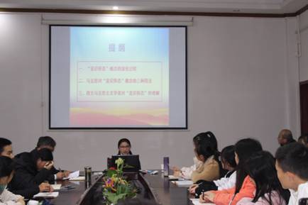 本网讯(文/杨文卓)11月27日,马克思主义学院“中国梦之声”系列讲座——“导师论坛”于马克思主义学院会议室举行,主讲人为王飞霞副教授、李景军副教授。廖胜刚教授主持。马克思主义学院老师、马克思主义理论学科全体研究生以及17级思想政治专业本科生参加了此次讲座。