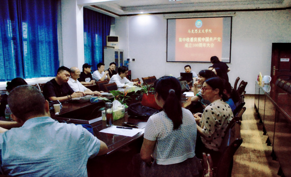 (图为马克思主义学院师生党员集体学习习近平总书记“七一”重要讲话)