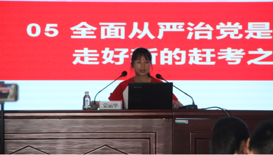 “勇于自我革命,从严管党治党,是我们党最鲜明的品格。”曾文副院长以全面从严治党为主线,深刻解读了全面从严治党是巩固党的执政地位的重大举措,是履行党的历史使命的必然选择,是解决党的现实问题的迫切需要。他强调,在新的征程上,广大党员干部要接续奋斗,保持“赶考”的清醒,牢记初心和使命,以优异成绩迎接党的二十大胜利召开!