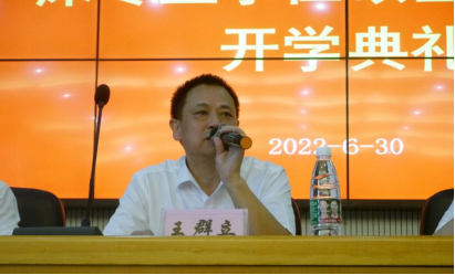 王群立书记致辞,他代表医学院对各位领导和新生们的到来表示热烈的欢迎,并对同学们提出殷切希望:一、铸魂修德,做到厚德载物。重点要求大家要铸爱党爱国之魂,修立身做人之德。二、勤学苦钻,提升能力学养。要求大家勤奋学习,刻苦钻研,提升能力、丰厚学养,特别强调研究生学习要做好问题准备、方法准备和体系准备。三、遵规守纪,确保安全规范。要求大家要强化纪律意识、法治意识、道德意识、规矩意识和安全意识。