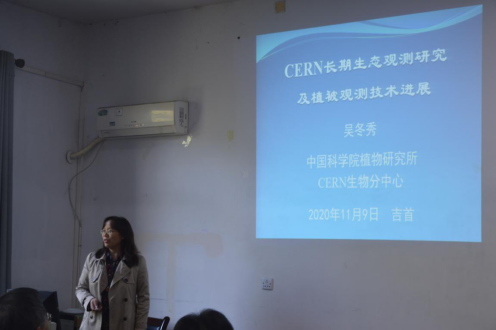报告开始,谭敦炎教授简要介绍了吴冬秀教授的研究领域和重要成果。随后,吴冬秀教授向我院师生介绍了世界主要生态观测系统研究网络的建设历史和中、美、英三国生态观测系统研究网络的现状和特点。然后,她详细介绍了中科院生态观测系统研究网络(CERN)和中国国家生态观测系统研究网络(CNERN),以及基于生态观测系统研究网络数据取得的一些重大科研成果。最后吴冬秀教授向在座老师同学讲解了如何查询和使用CERN数据库中的生态学数据。