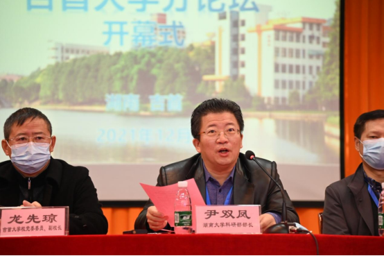 本网讯(通讯员唐康凌),2021年12月4日上午,湖南省研究生创新论坛“化学合成与功能材料”吉首大学分论坛开幕式在我校模拟法庭报告厅举办。出席论坛的有吉首大学副校长龙先琼、研究生学院院长蒋辉、吉首大学化学化工学院院长李佑稷以及化学化工学院师生,特邀了湖南大学尹双凤教授、张晓兵教授,南昌航空大学李金恒教授,厦门大学彭栋梁教授,中南大学刘又年教授为研究生做学术报告。开幕式由湖南大学化学化工学院院长尹双凤教授、吉首大学化学化工学院院长李佑稷教授共同主持。