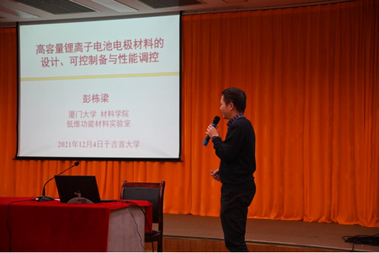 学术报告(三),由厦门大学材料学学院院长、国家杰青彭栋梁教授以“高容量锂离子电池电极材料的设计、可控制备与性能调控”为主题做了精彩的学术报告,介绍了自己科研道路上的经历、实验课题组的现研究情况以及电池电极材料如何巧妙的设计等内容。