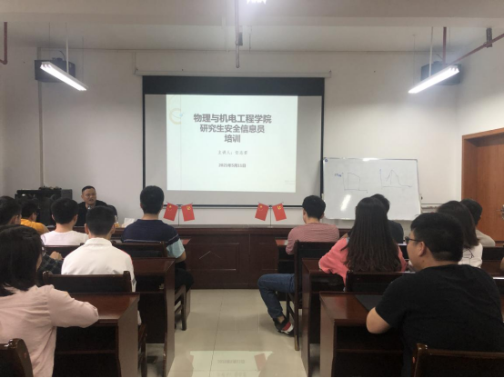 为进一步加强学院研究生安全稳定工作,提升学院管理育人、心理育人工作质量,提高学生安全信息员的工作意识和工作能力,5月11日中午,物理与机电工程学院在第十二教学楼A416举行研究生安全信息员培训讲座。讲座由学院团总支书记任志君老师主讲。