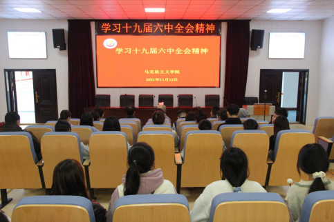 学习党的十九届六中全会精神,是当前的重大政治任务,是目前党史学习教育的重要内容。马院师生不仅第一时间收听收看六中全会公报,更是第一时间透彻领悟六中全会要义,真正发挥马院的示范引领作用。会上,院研究生分会主席主席何玮带领大家集体研读《中国共产党第十九届中央委员会第六次全体会议公报》,大家集体收看《新闻联播》。