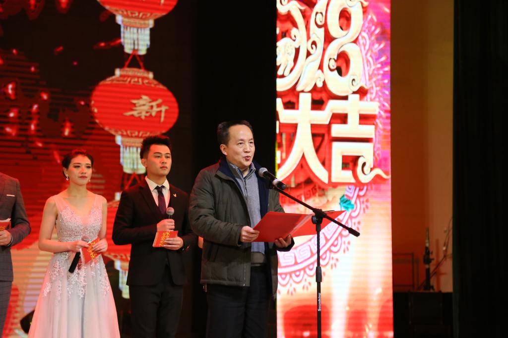 本网讯(李飞 宋林凤)12月27日晚,我院2018年“不忘初心,圆梦吉大”研究生院元旦晚会在砂子坳音舞演奏厅隆重举行。校长白晋湘、副校长钟海平、龙先琼;湘西州州委常委、吉首军分区司令员刘长进、我国著名艺术家毛光辉、湘西州人大常委会副主任宛庆丰、湘西州文广新局副局长高振翼、湘西州科技局副局长翁立志、湖南日报记者杨元崇先生及研究生院、各职能部门相关负责人出席本次晚会,与我校研究生共聚一堂,辞别旧岁,进行新年展望,共同感受属于研究生院的精神风貌。