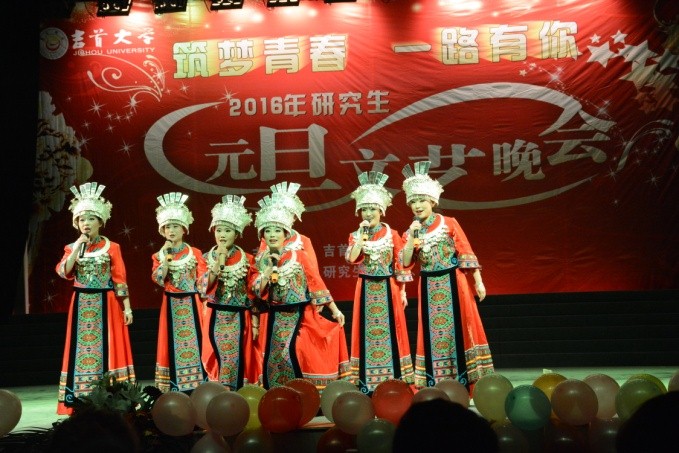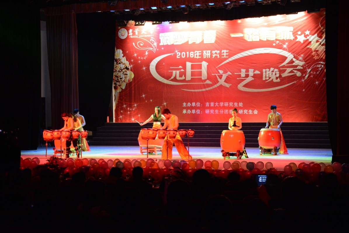 2015年12月19日,由研究生处举办的“筑梦青春,一路有你”元旦晚会在音乐舞蹈学院实验剧场华丽上演。气势磅礴的鼓声、火热的舞蹈、激情的演唱、风趣的相声......各类节目轮番上映,让人眼花缭乱。现场气氛热烈,笑声不断,我校李定珍副校长、各院领导、老师及各院学生观看了此次晚会。