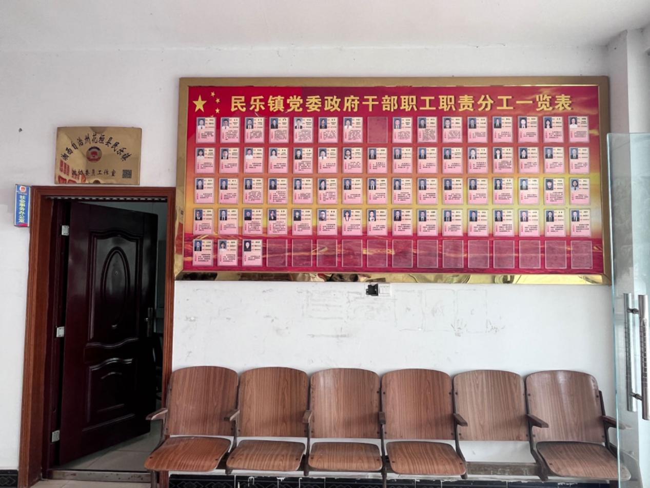 到达民乐镇人民政府后,“学党史 悟思想 办实事 开新局”映入眼帘,调研团成员们深切感受到了党和政府为人民服务的决心和动力。在民乐镇党委组织委员、统战委员杨容的带领下,民乐镇干部职工与调研团成员积极交流数字治理网格化的发展,并向调研团成员讲述为乡村振兴插上“数字翅膀”的田家社区。