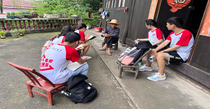 (图为实践团与石老人交谈时的合影)