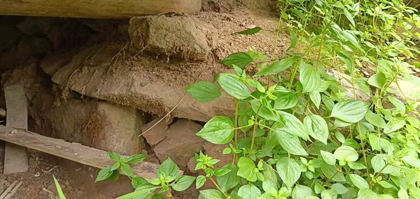 调查团队与万岩村村委接洽后,便对村内的营汛旧址进行实地考察。在村民石大伯的带领下,调查团察看营汛的具体范围和残存地基。由于年代久远,雄伟壮观的营堡已消失不见,多数营汛旧址也被用作居民宅基地,只能依稀分辨大致范围与地基石。在与村民的交谈中了解到了营汛的历史及作用,并得知当地有“十里一营,五里一沼”的说法,但是否真实还有待考证。通过史料记载以及实地考察,可知湘西苗疆(引自《苗疆屯防实录》)的营汛选址有如下特点:一是营汛选址多位于高处,以便俯瞰四周;二是基本遵循“十里一营“,”一村一塘汛”的原则,以联声势;三是依地势而建,该村地势崎岖、高低不平,因此营房布局呈现阶梯式的特点。