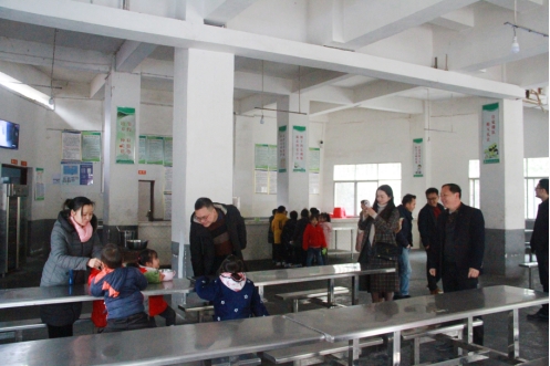 (图为蒋辉一行参观学校食堂)