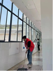 志愿者们戴着专属于研学会的工作牌,穿着蓝色的志愿马甲,分布在校园的各个角落,为建设美丽校园贡献着自己的力量。此外,在进行服务的过程中,保卫阿姨、卫生员阿姨以及其他同学都对此次校园清扫活动很是支持。最后,经过志愿者一个多小时的共同努力,活动区域焕然一新,垃圾都被清扫干净。