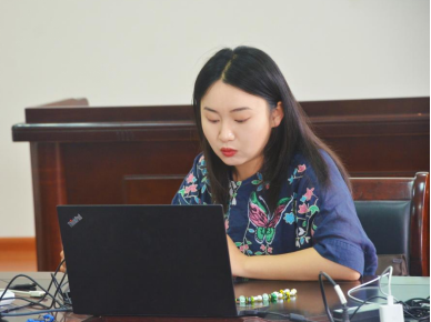 (图为志愿服务部副部长龙苗英进行汇报)