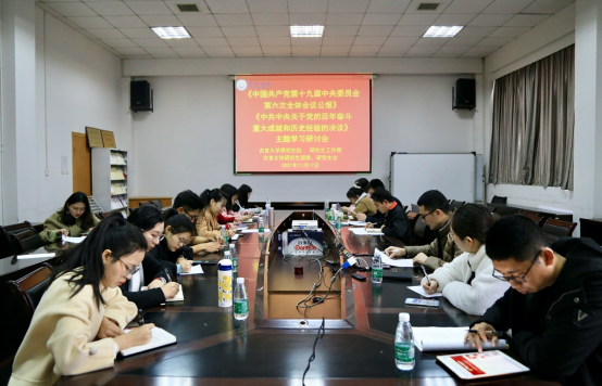 会议第二项,现场老师、研究生会成员以及线上研究生会成员对党的十九届六中全会精神学习进行了心得体会的交流。