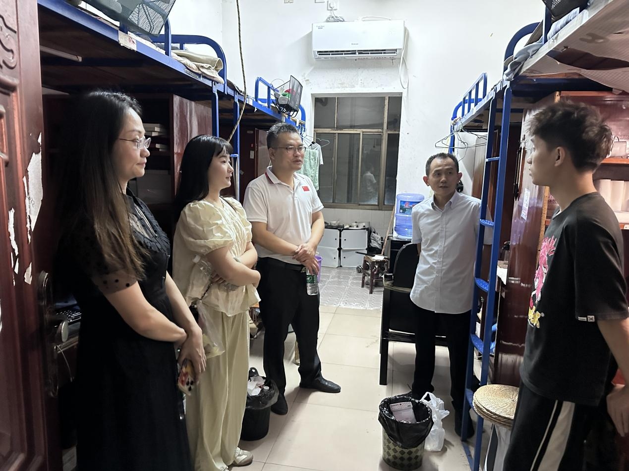 (文/龚棋)为深入了解我校研究生返校情况,更好推进管理服务质量,解决学生的实际困难。2023年9月10日晚,吉首大学研究生院院长蒋辉、研究生院副院长廖文虎、研究生院教育管理科科长杨婵及研究生会成员前往研究生宿舍进行慰问走访。