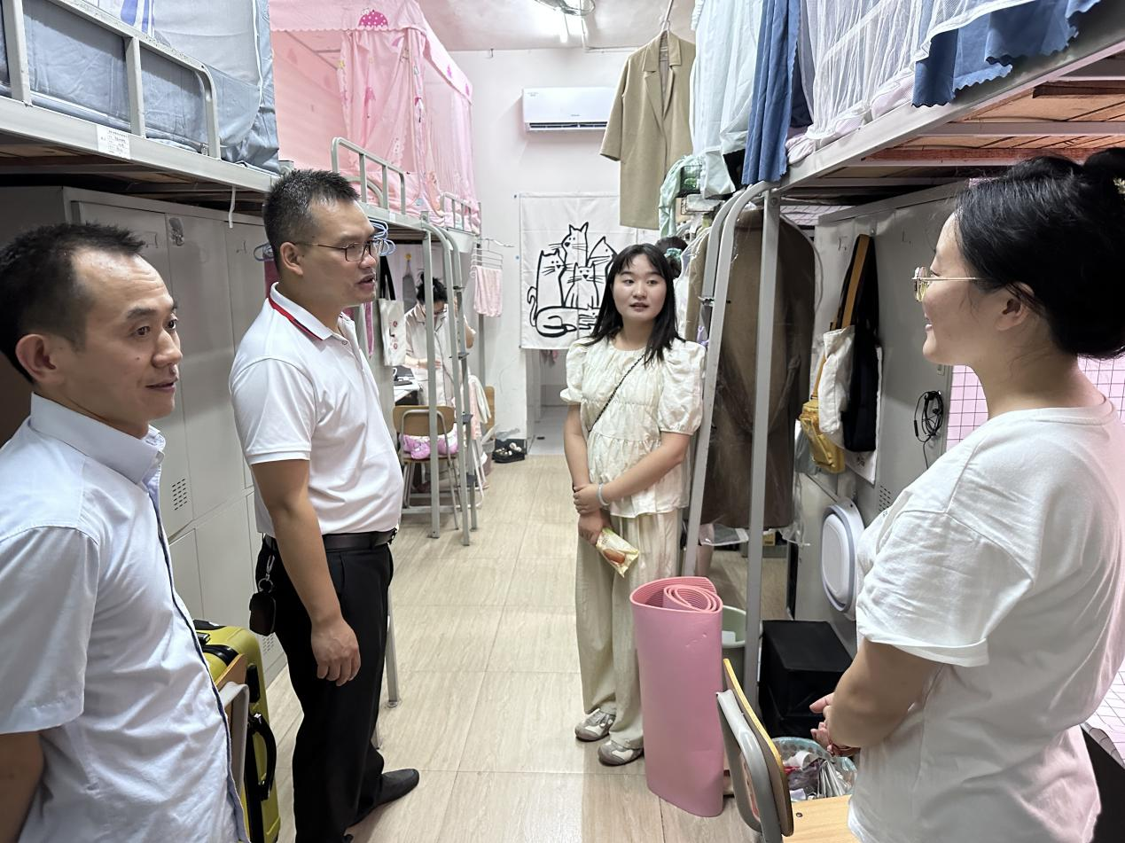 在走访过程中,老师们亲切关心同学们的返校和假期安全情况,并了解他们的暑期生活。在学习方面,他们与同学们交流论文情况和学习进度,同时普及与考公考编相关的知识;在生活方面,他们查看了研究生宿舍的基础设施问题,并表示学校将努力提高住宿条件,以帮助同学们更好地适应校园环境,专心学习和科研。在走访中可以看到,许多学生都把宿舍打理得井井有条,为新学期的学习生活做出积极的准备,充分彰显了研究生的良好精神风貌。