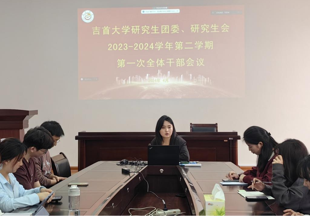 为更好推进吉首大学研究生团委、研究生会的日常工作,加强各部门间的交流与学习,2024年4月1日中午,我校研究生团委、研究生会于研究生院二楼会议室召开了2023-2024学年第二学期第一次全体干部会议。本次会议由我校研究生会执行主席毛羽冰主持,各部门全体干部参加了此次会议。