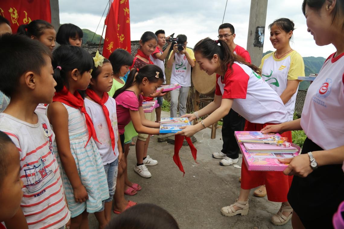图为实践团为联团村孩子们赠送学习用品