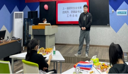 会议第二项议程,由上一届团委副书记张祁和研究生会主席团成员苏宁作2021年年度工作总结。张祁和苏宁分别总结了这一年的活动以及遇到的问题和解决方法,分享了自身的感受以及进步,并鼓励研究生会干部继续努力开拓进取,并祝福研究生会越来越好。